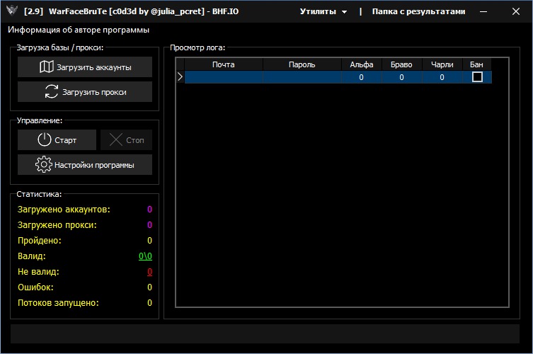 - Возможность быстрого перехода на файл валидных аккаунтов из программы.