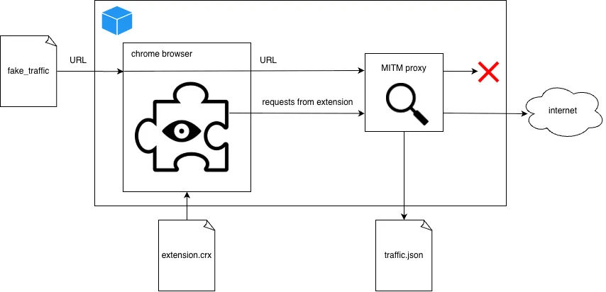 Специалист разработал автоматизированную систему тестирования на базе Docker с Chromium за MITM-прокси: пайплайн генерировал синтетический браузерный трафик и сопоставлял исходящие сетевые запросы с посещенными URL, выявляя утечки. Проверке подверглись 32 000 расширений из Chrome Web Store, и в итоге было найдено более 30 компаний, которые собирают такие данные.