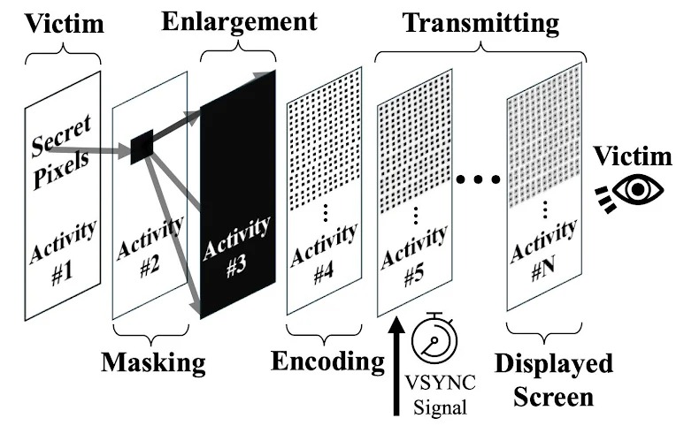 Изолировать каждый отдельный пиксель можно, открыв то, что исследователи называют «маскирующей активностью», которая происходит на переднем плане и скрывает целевое приложение. Затем атакующий делает окно маскировки «полностью непрозрачным белым, за исключением пикселя в выбранной атакующим позиции, который становится прозрачным».