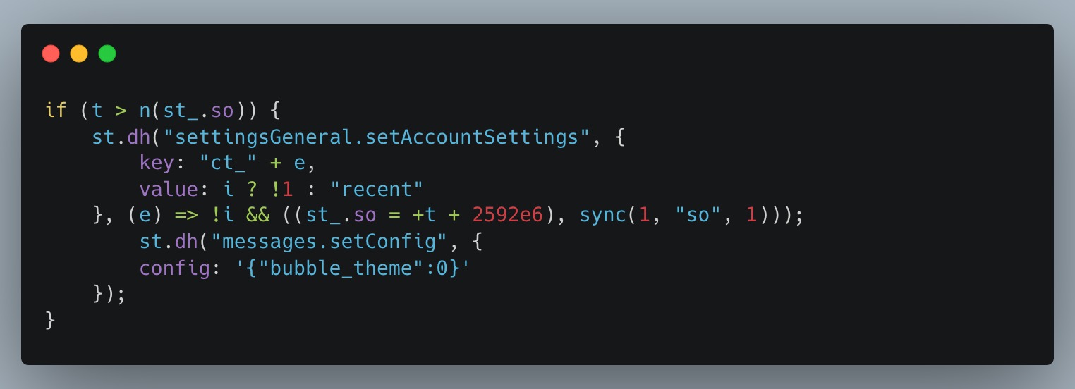 При этом каждые 30 дней малварь откатывала настройки профиля жертвы, меняя сортировку ленты на «Недавнее» вместо алгоритмической, переопределяя любые кастомные настройки и другие параметры профиля.