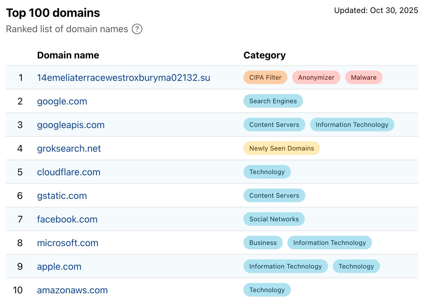 По данным экспертов, с 19 по 22 ноября текущего года один из управляющих серверов Kimwolf (14emeliaterracewestroxburyma02132[.]su) возглавил топ-100 доменов Cloudflare по активности, опередив даже Google.