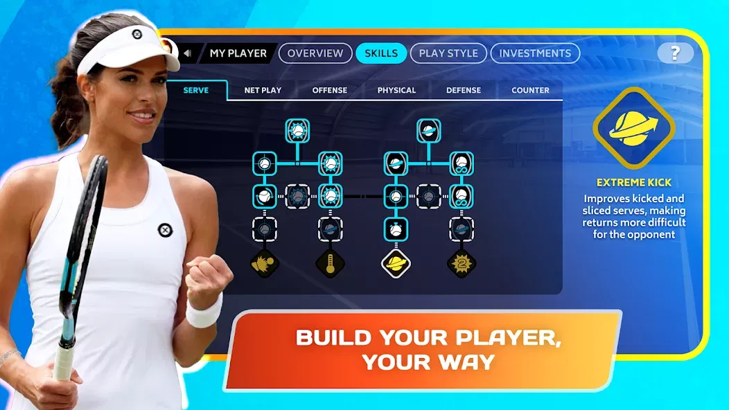 Нам предоставлено свыше 2 тыс. турниров и 5 тыс. спортсменов с возможностью ручного управления, организации теннисистов, обучения их в собственной академии и установкой учебных программ, тренировками в качестве коуча, режимом зрителя, системами мониторинга, редактора и упрощённой тактики для начинающих геймеров.