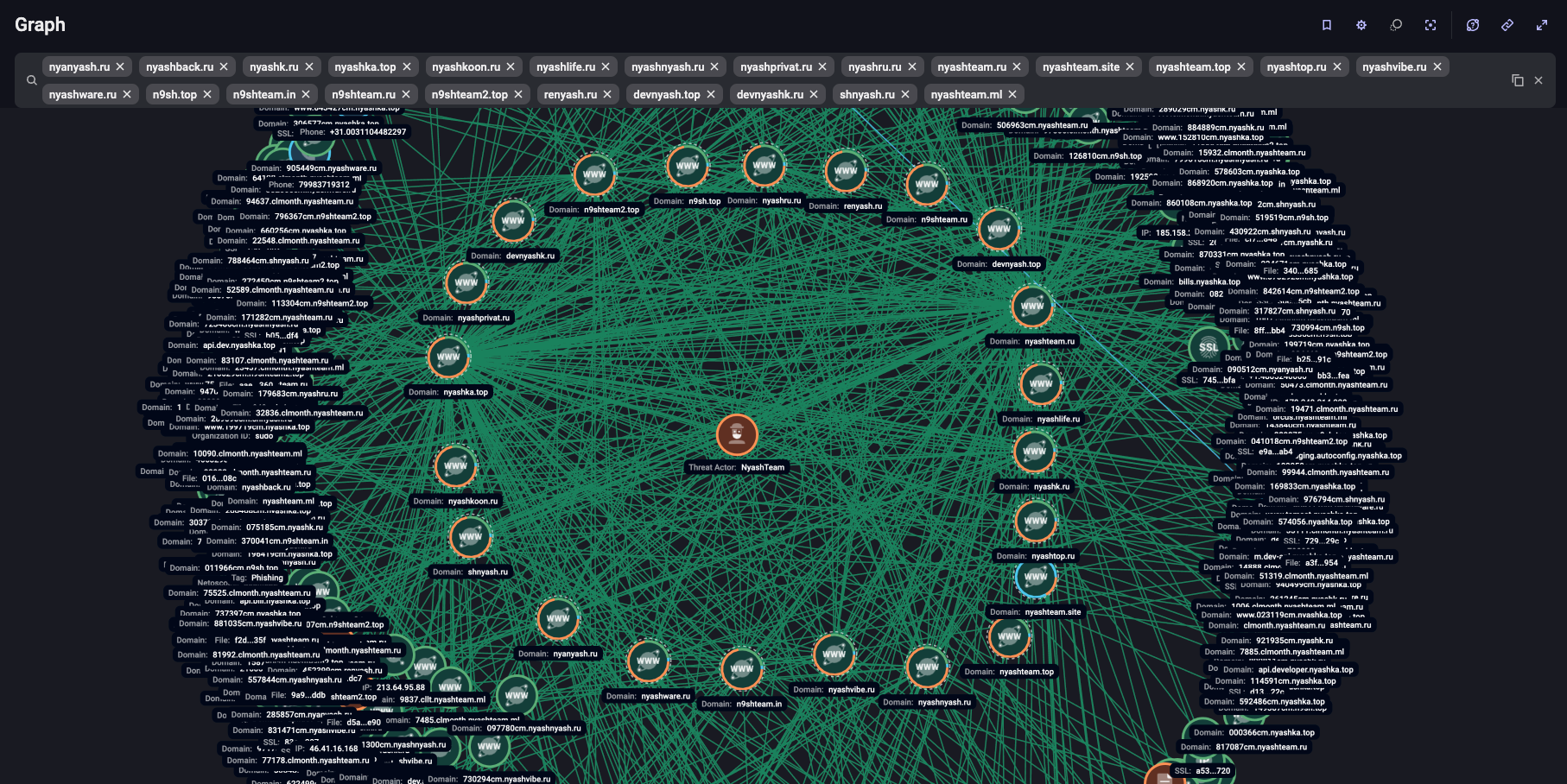 Для предоставления услуг хостинга под размещение малвари NyashTeam активно регистрирует домены второго уровня, в том числе в зоне .ru. В основном хакеры используют для доменов характерные названия, такие как «nyanyash[.]ru», «nyashback[.]ru», «nyashk[.]ru», «nyashka[.]top», «nyashkoon[.]ru», «nyashlife[.]ru», «nyashnyash[.]ru», «nyashprivat[.]ru», «nyashru[.]ru», «nyashteam[.]ru», «nyashteam[.]site», «nyashteam[.]top», «nyashtop[.]ru», «nyashvibe[.]ru», «nyashware[.]ru», «n9sh[.]top», «n9shteam[.]in», «n9shteam[.]ru», «n9shteam2[.]top», «renyash[.]ru», «devnyash[.]top», «devnyashk[.]ru», «shnyash[.]ru», «nyashteam[.]ml» или имена, содержащие названия малвари — «webrat» и «dcrat», а на их основе создают домены третьего уровня.