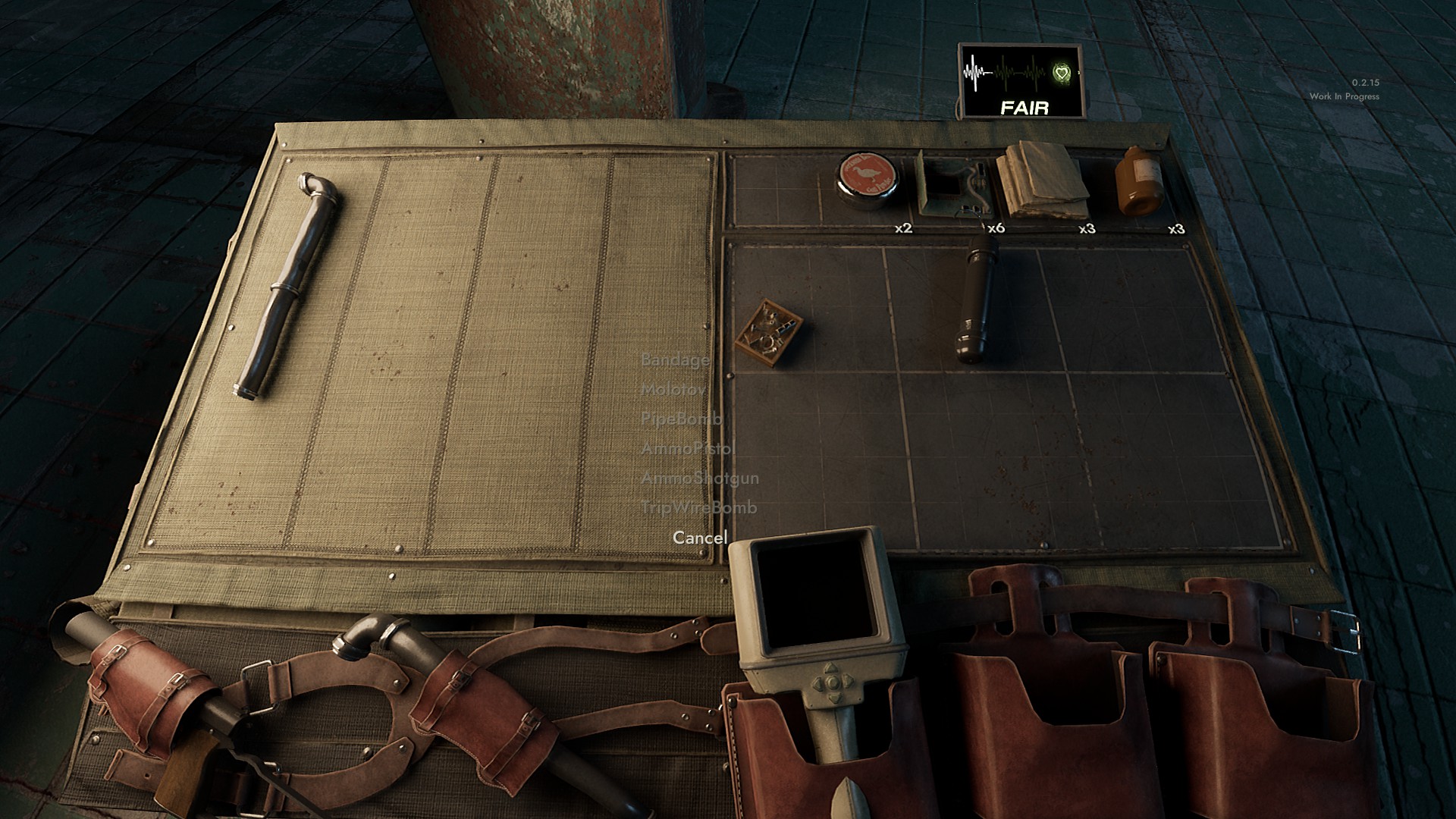 Принцип почти не поменялся: это всё тот же шутер, пробираемся по локации, отстреливаем мобов, открываем проход дальше и так далее, но с новыми механиками. Разберём их подробнее. Игроку доступны основной и дополнительный слот для оружия, которое используется в бою, а также четыре дополнительные для хранения. Показаны были три типа оружия — пистолет, дробовик и труба, которая со временем сломается. Также есть ещё три кармана для приспособлений, бинтов и устройств и ещё шесть слотов, в которые можно размещать неиспользуемые вещи, также в этих же слотах происходит крафт путём перетаскивания в них нужного количества необходимых материалов. Крафтить можно всё необходимое, начиная от боеприпасов и заканчивая гранатами с бинтами.
