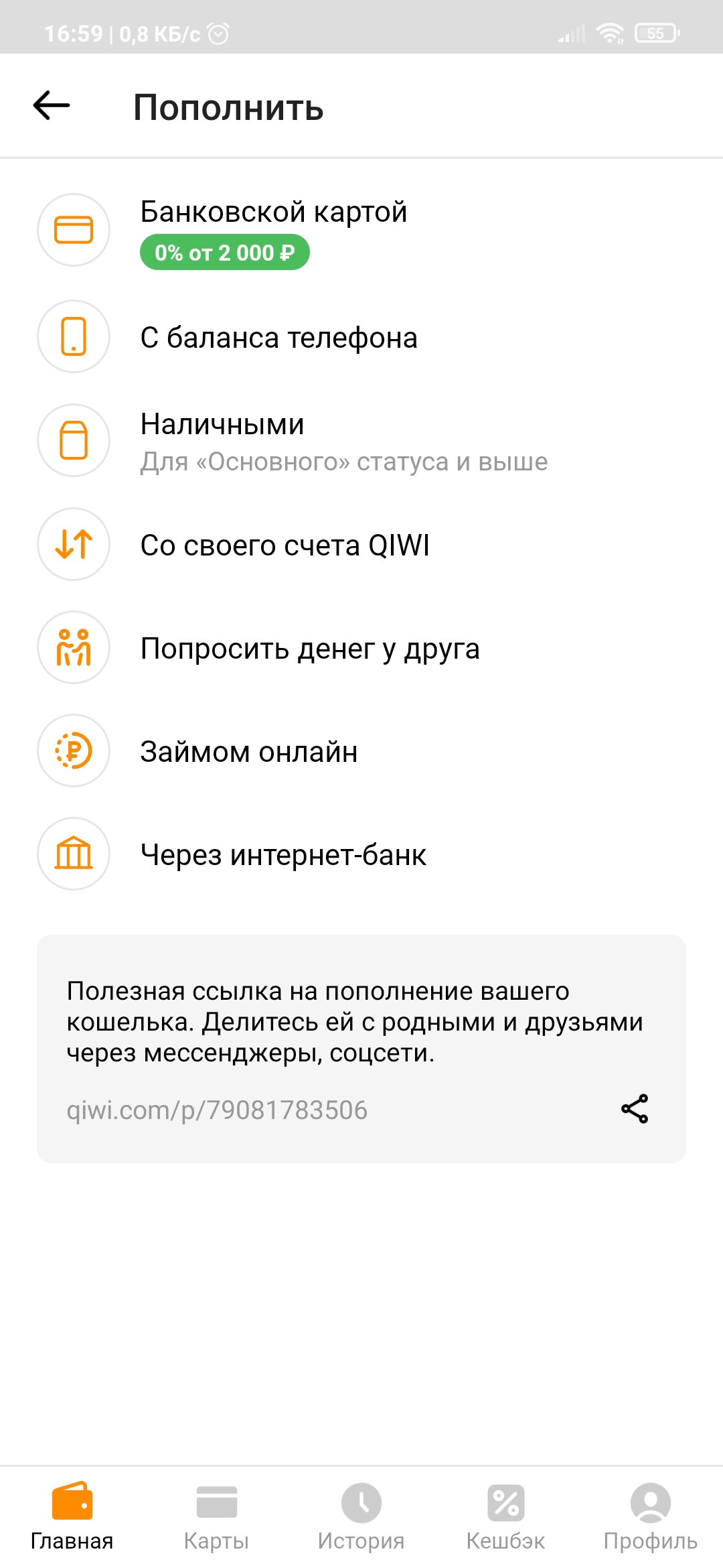 2) Нажимаем пополнить кошелек -> со своего счета КИВИ