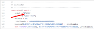В строке 117 напишите полное название токена, можно с пробелами. В строках 120 и 121 (Balances и Transfer) укажите свои адреса кошельков, созданные вами в Metamask.