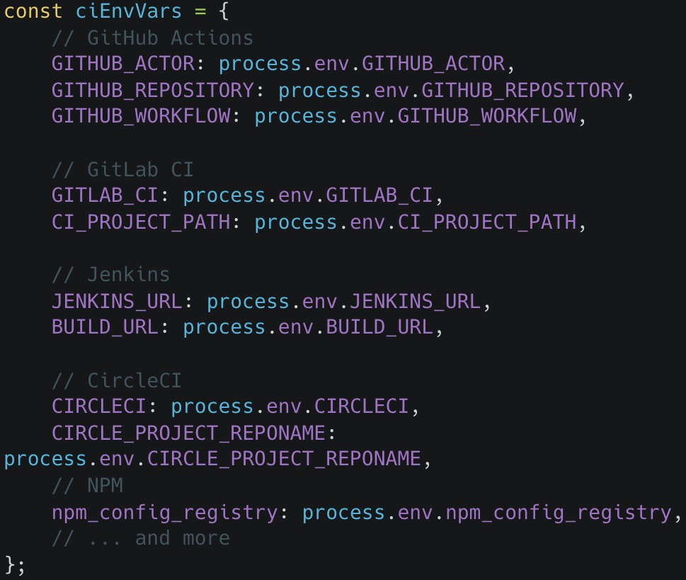 - токены и учетные данные для npm, GitHub Actions, GitLab, Jenkins и CircleCI;