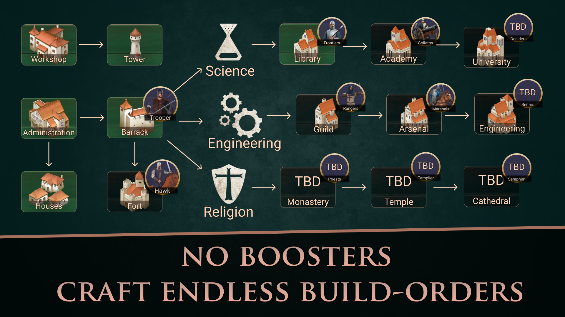 Каждая фракция обладает эксклюзивными юнитами и технологиями, создавая разнообразные тактические возможности. Игроки могут командовать тысячами воинов, используя продвинутую систему управления, которая сохраняет возможность точного микроменеджмента отдельных отрядов. Исход сражений также будет зависеть от грамотно расставленных оборонительных сооружений, грамотного использования мин и алхимического оружия.