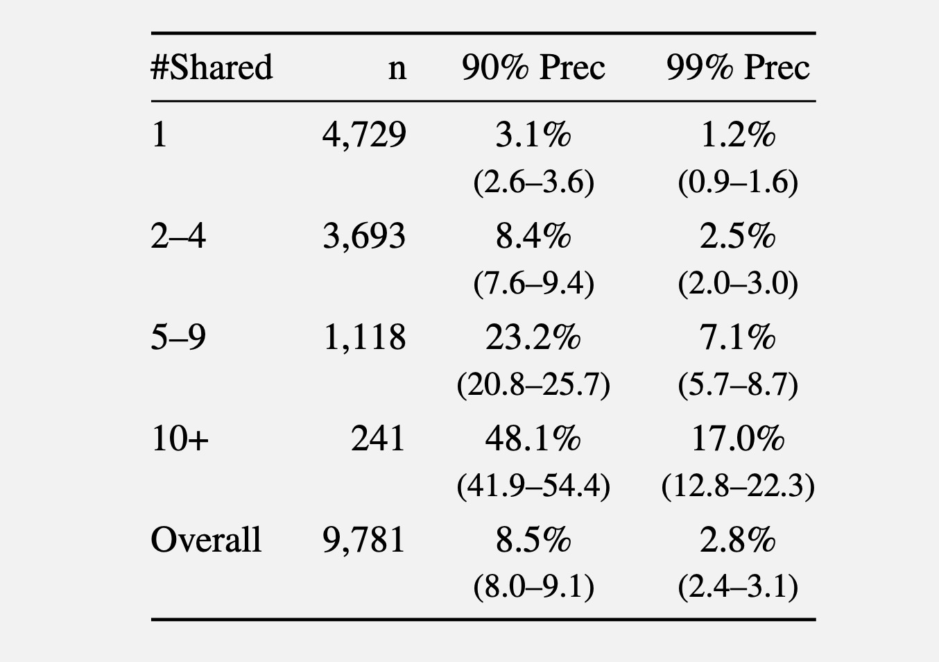 Еще один тест опирался на комментарии с сабреддита r/movies и пяти смежных киносообществ (r/horror, r/MovieSuggestions, r/Letterboxd, r/TrueFilm и r/MovieDetails). Чем больше фильмов обсуждал пользователь, тем проще оказывалось его идентифицировать. Среди тех, кто упоминал один фильм, при точности 90% удавалось деанонимизировать 3,1% пользователей. Для тех, кто обсуждал от пяти до девяти фильмов, показатель вырос до 8,4%, а при десяти и более — до 48,1%.