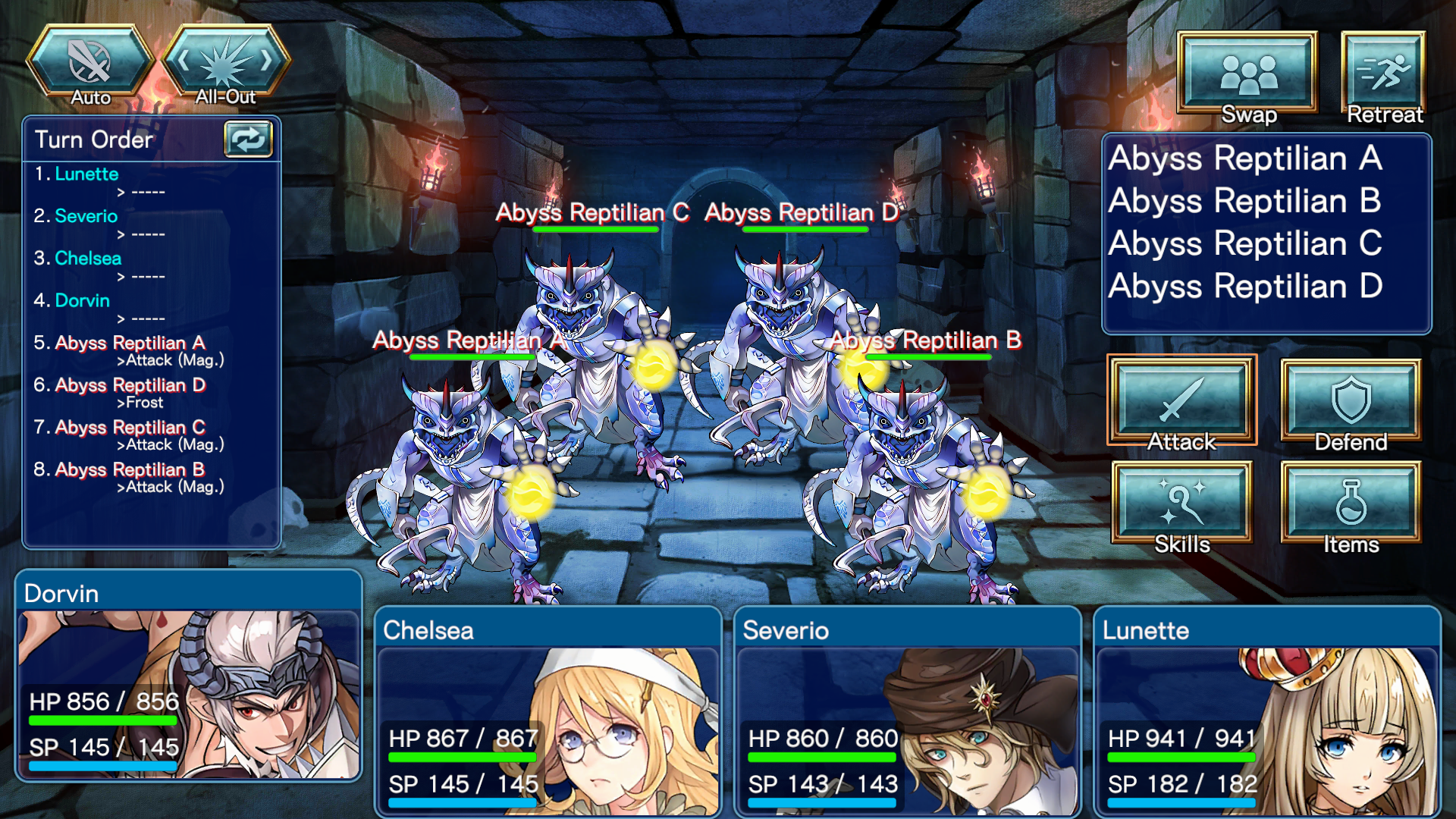 Hero Seekers выполнена в духе классических японских RPG с пиксельной графикой и пошаговыми сражениями. Особенностью игры стала возможность формировать группу из пяти героев, что выгодно отличает ее от многих современных мобильных RPG с ограничением в три персонажа. Система боя делает акцент на стратегических синергиях навыков, позволяя создавать мощные комбинации атак.