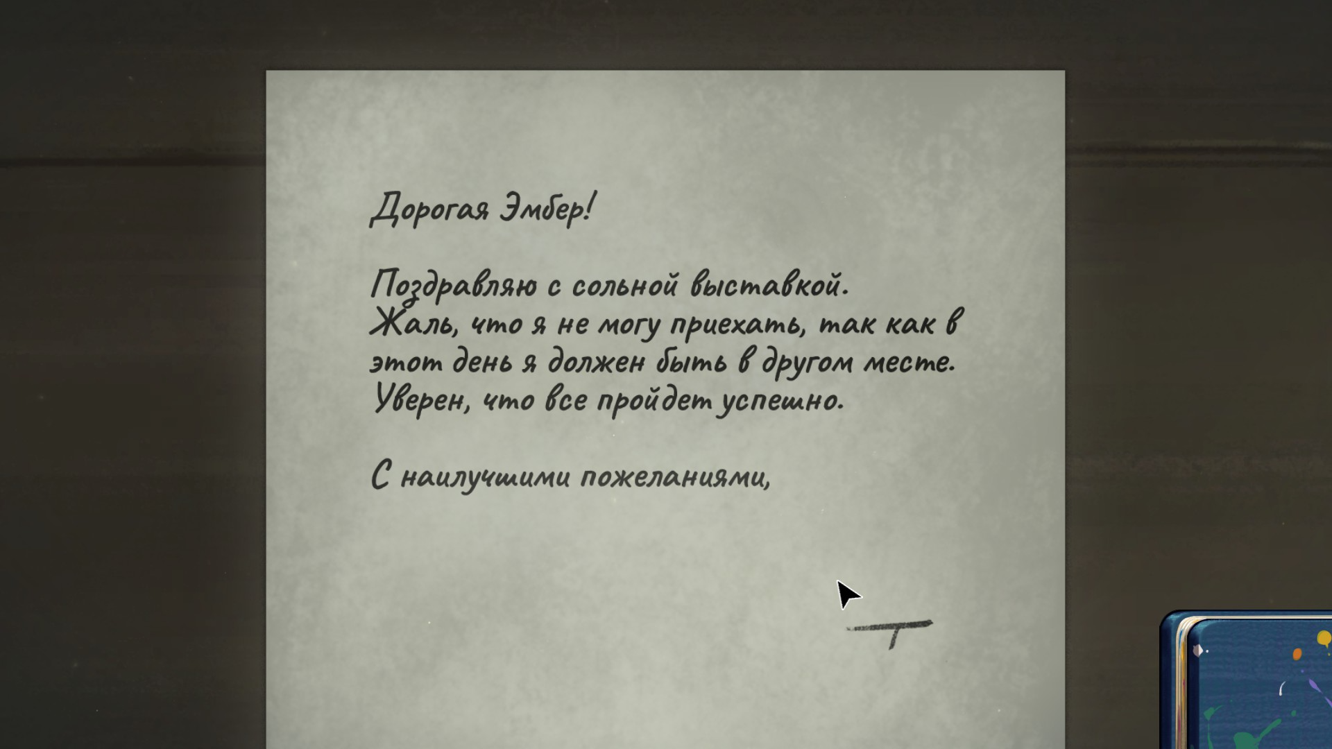 Скажу сразу, тут не может быть единого мнения со стороны игроков. Сюжет преподносится так, что каждый видит разворачивающуюся на экранах историю так, как сам думает. Джек, оставшись в городе, продолжил рисовать и даже получал награды.Только, как это видится мне, из-за нерешительности Джек так и не признаётся Эмбер в том, что испытывает к ней, и со временем их общение, включая переписку, заканчивается. Там, где одни скажут, что расстояние всё решило или что Эмбер изначально не рассматривала Джека как романтический интерес, я отвечу: Джек сам виноват в том, что общение сошло на нет. Играя за парня, игрок видит, что на самом деле Джек хочет написать, но потом передумывает и пишет сухой ответ на манер канцелярской отписки.