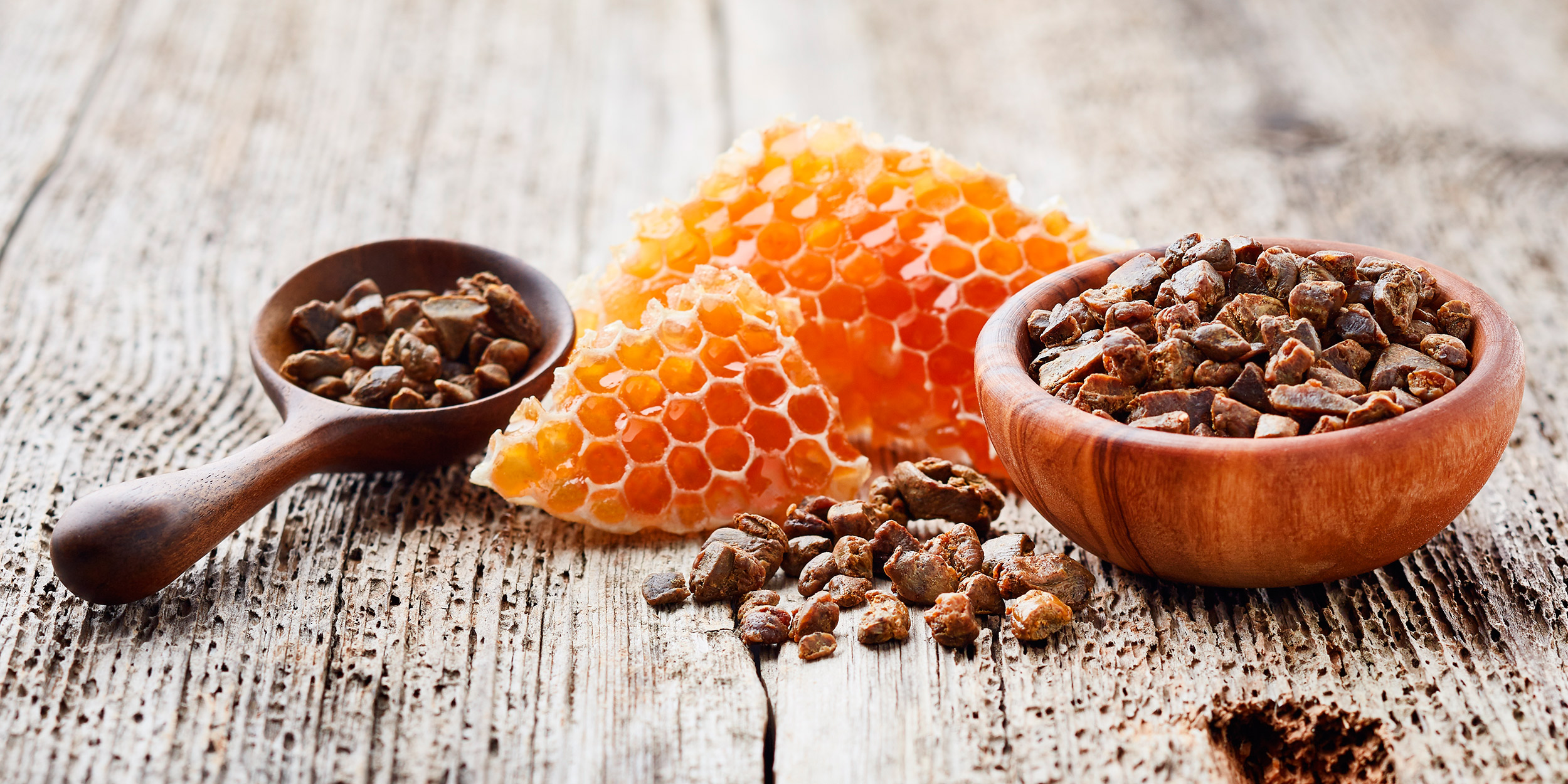 Прополис — это смола из пыльцы, масел и воска, с помощью которой пчёлы строят улья. Люди достают, очищают и добавляют этот материал в различные продукты:- мази и кремы;
