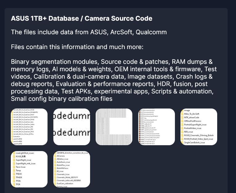 В заявлении злоумышленников говорится, что они похитили терабайт данных у компаний Asus, ArcSoft и Qualcomm. Хакеры пишут, что им удалось украсть: