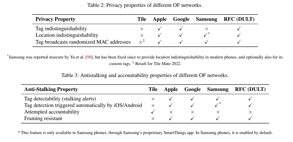 Этот недостаток обусловлен тем, что Tile является сторонним продуктом, который не имеет доступа к устройствам на уровне ОС, а только на уровне приложений. Это означает, что Tile не может выполнять фоновое сканирование, если только не применяет собственные протоколы Google или Apple.«Все производители, кроме Tile, давно внедрили алгоритмы защиты от преследования, которые гарантируют обнаружение трекеров на уровне операционной системы, обеспечивая постоянный запуск сканирования в фоновом режиме и автоматическое оповещение пользователя, — говорят исследователи. — Полагаясь на ручное, инициируемое пользователем сканирование, Tile создает опасные пробелы в обнаружении».
