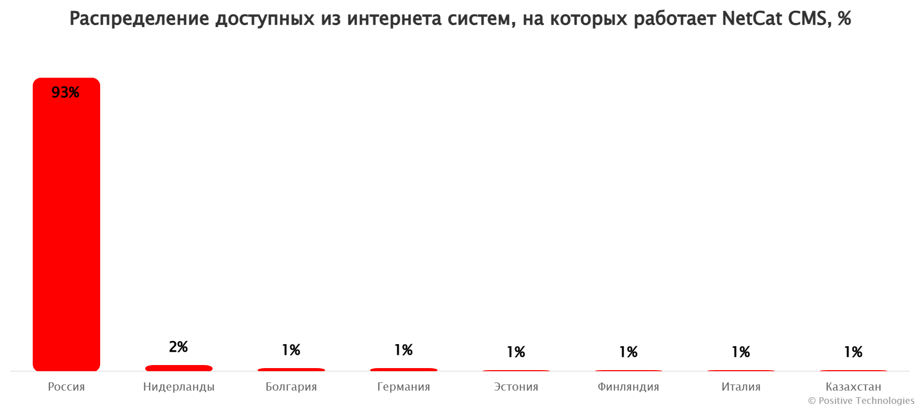 Согласно официальным данным компании-разработчика NetCat CMS, на этой системе управления сайтами работает более 15 000 ресурсов. Также исследователи отмечают, что продукт входит в реестр программного обеспечения Минцифры.